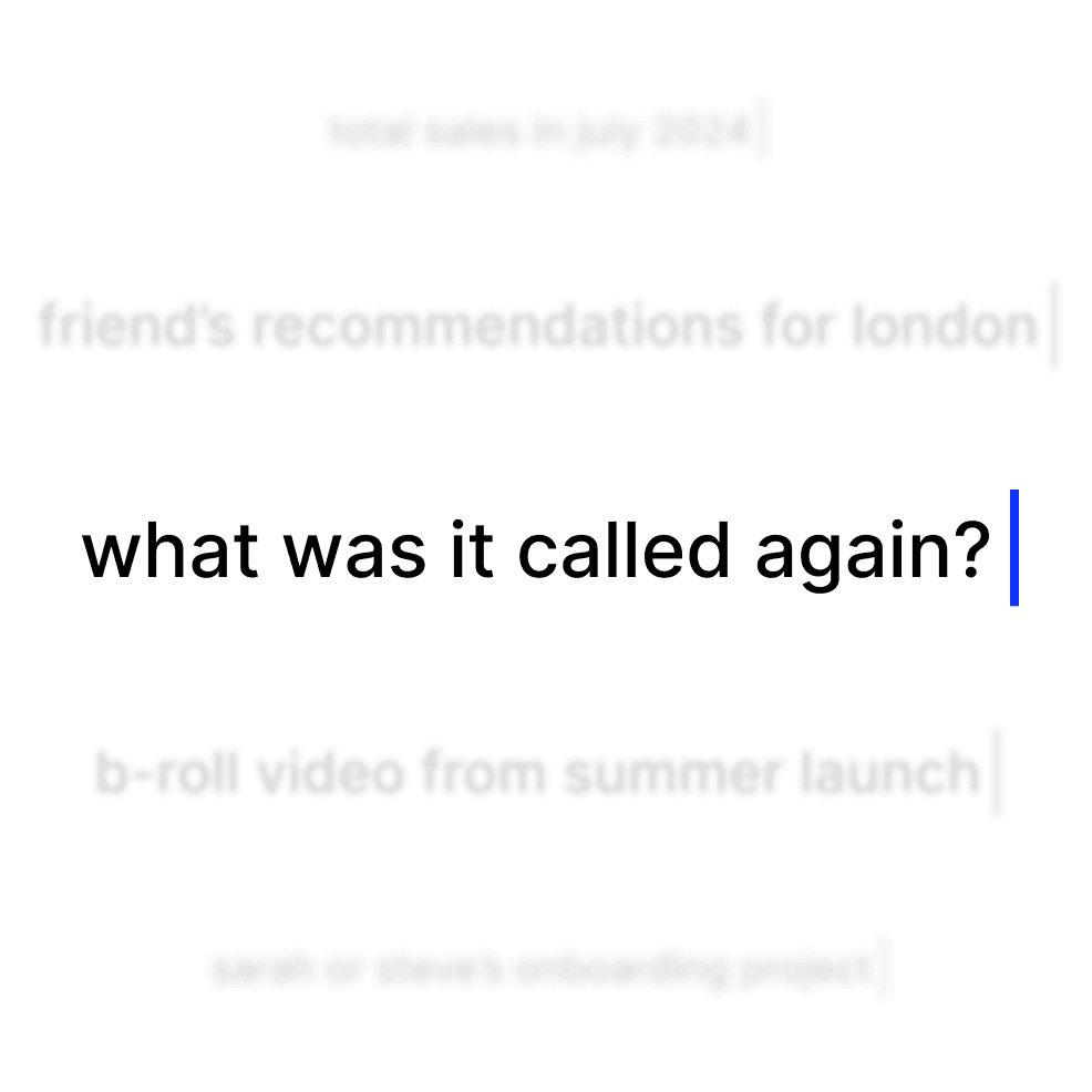 Ask questions like "find that presentation about marketing metrics from last quarter" and get exactly what you need.