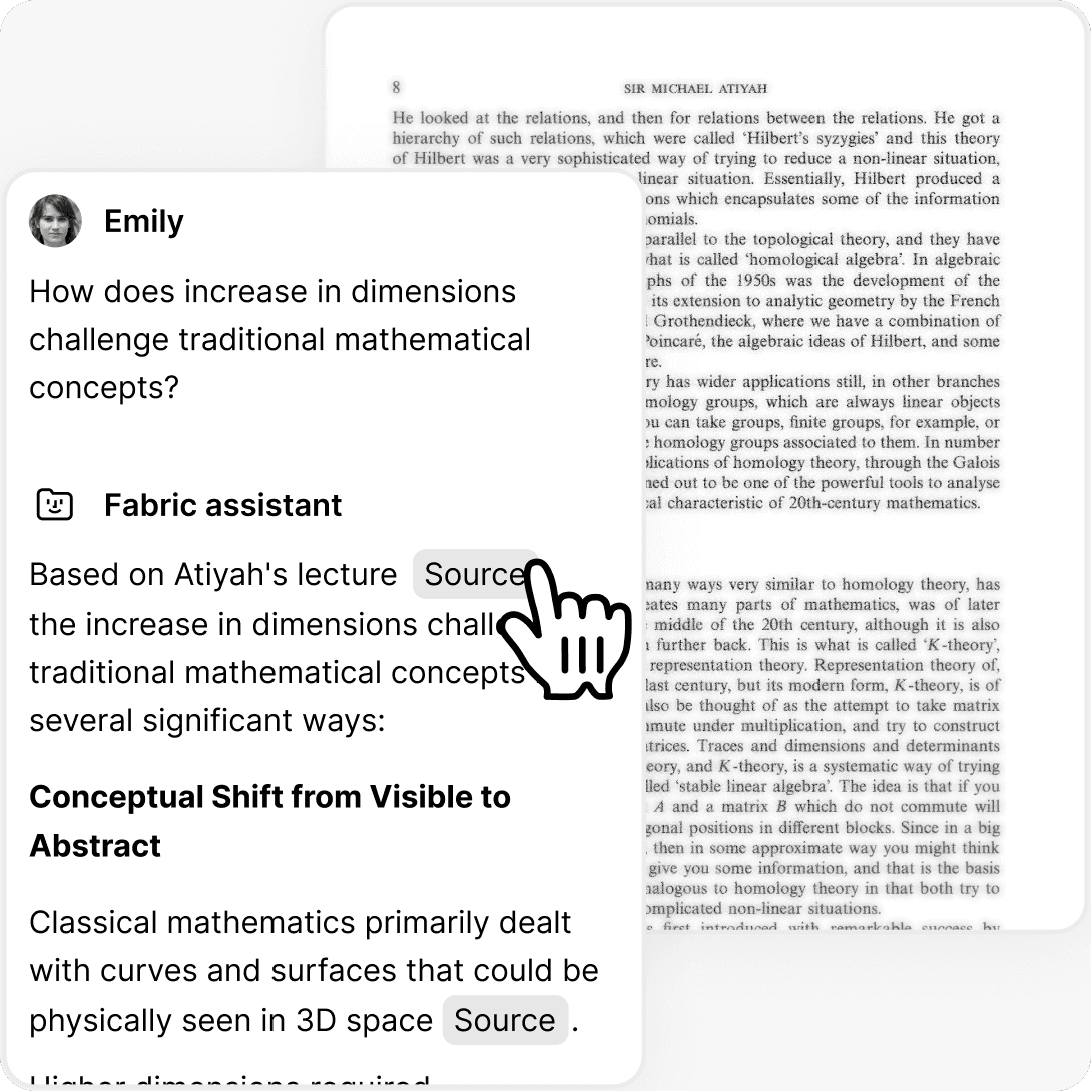 Fabric can show you files and notes that share themes, ideas and concept. Explore your content in a new way, based on meaning.