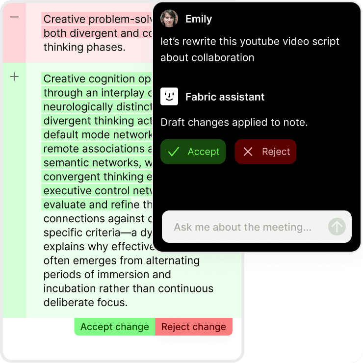 Fabric's AI works with your files, not just the internet.