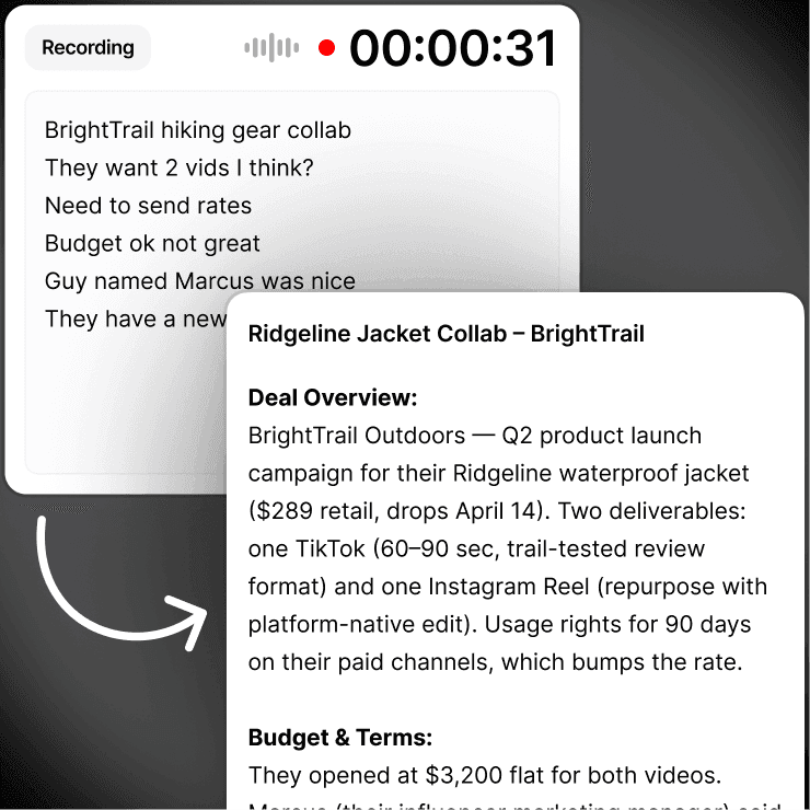 Record a brainstorm, a voiceover draft, or a client call.
