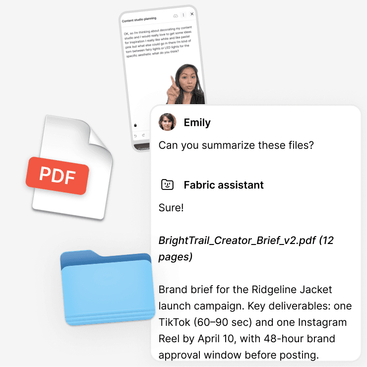 Fabric stores your files like they do, but it also understands them. The AI assistant can read, search, summarize, and help you create based on everything in your library. It's storage that thinks.
