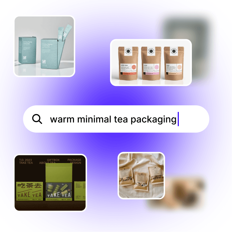 Type "warm minimalist packaging from the tea brand project" and Fabric finds it.