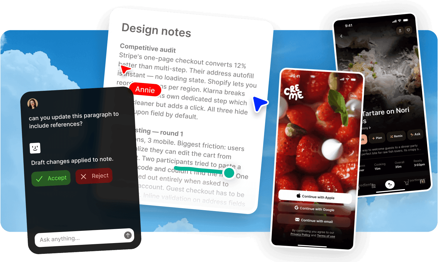 Use the editor to capture thinking, rationale, and direction right next to the work itself.