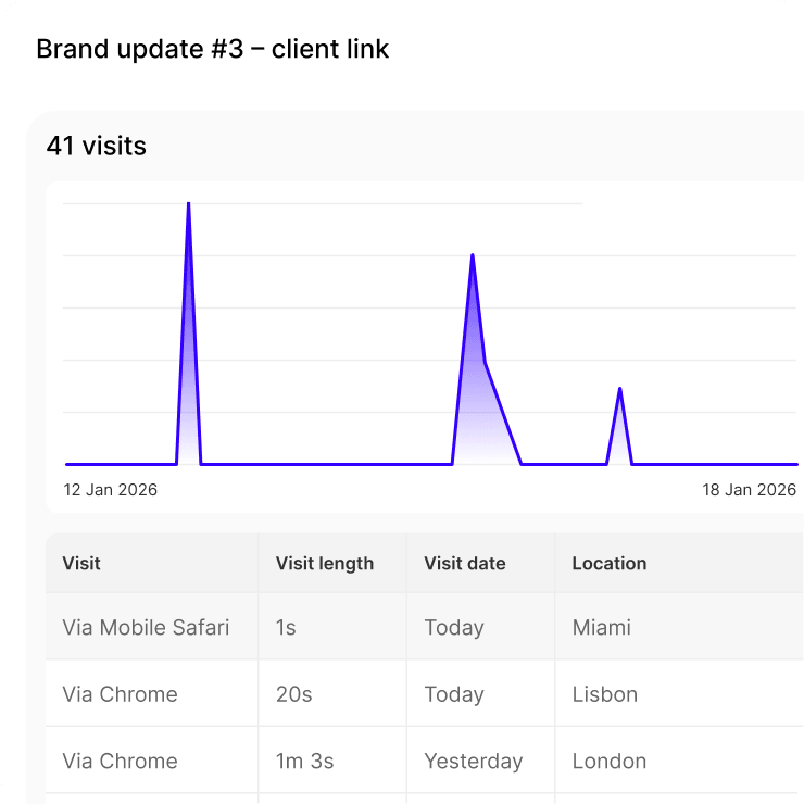 See who opened your link, when, and how long they spent on each page.